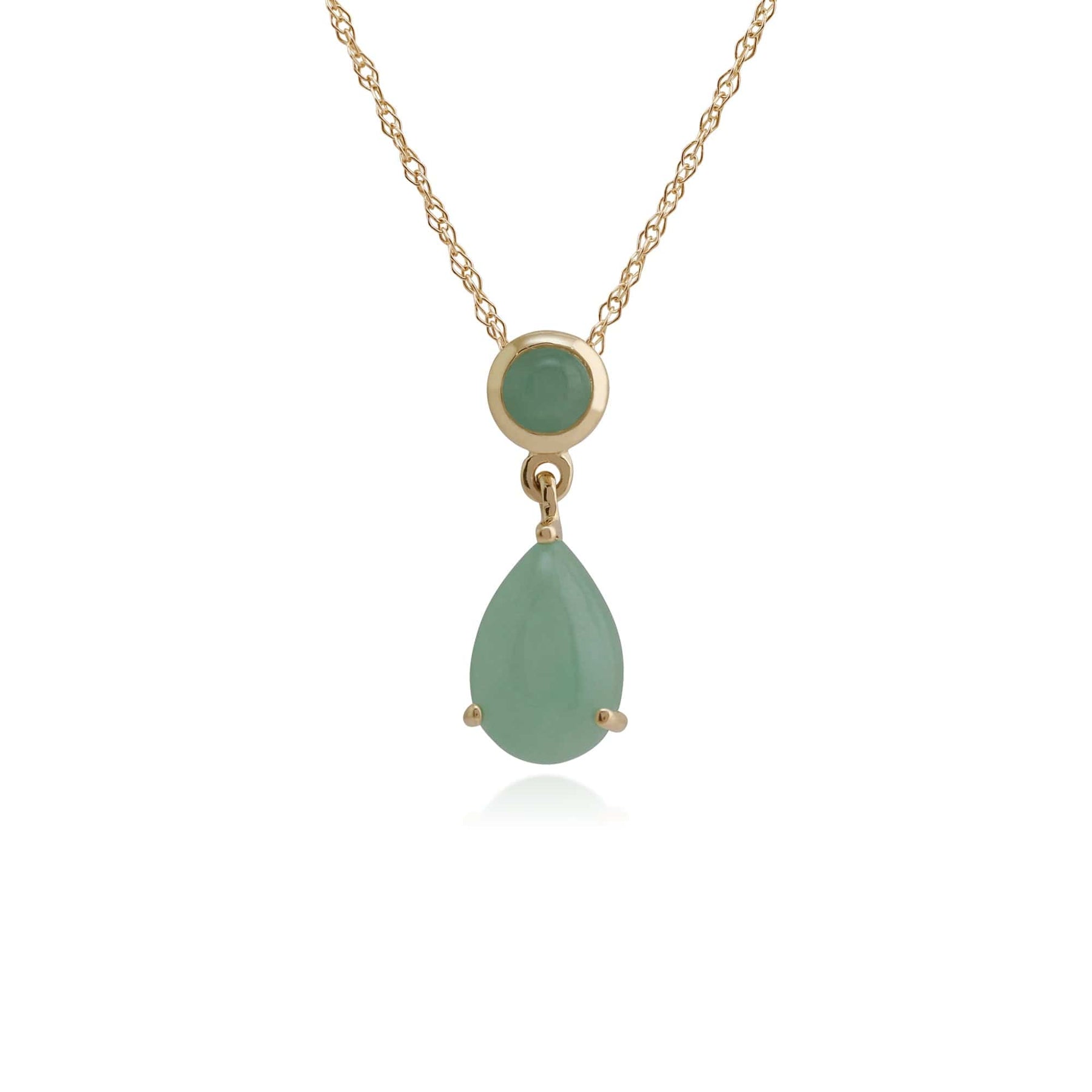 Classic Pear & Round Jade Drop Earrings & Pendant Set in 9ct Gold
