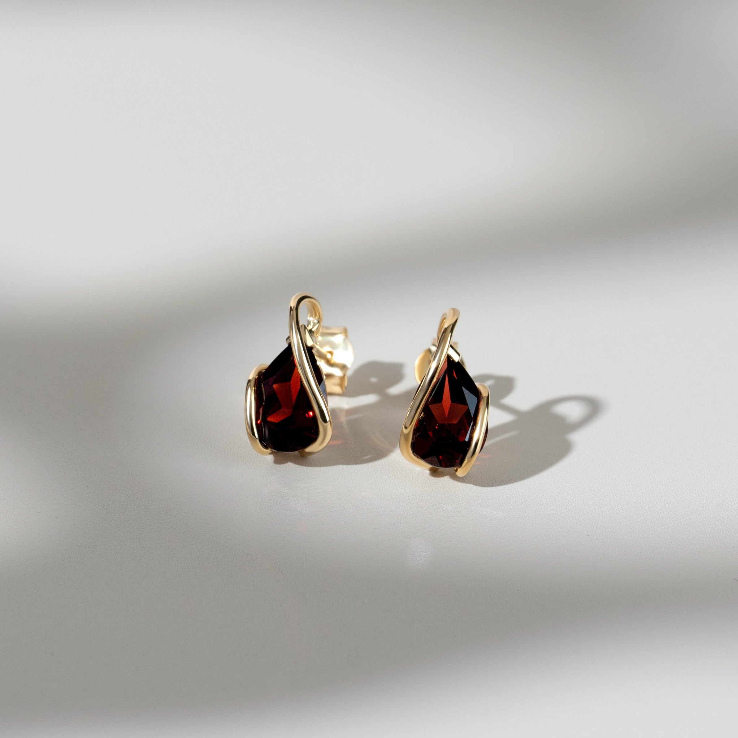 Classic Pear Garnet Stud Earrings in 9ct Yellow Gold