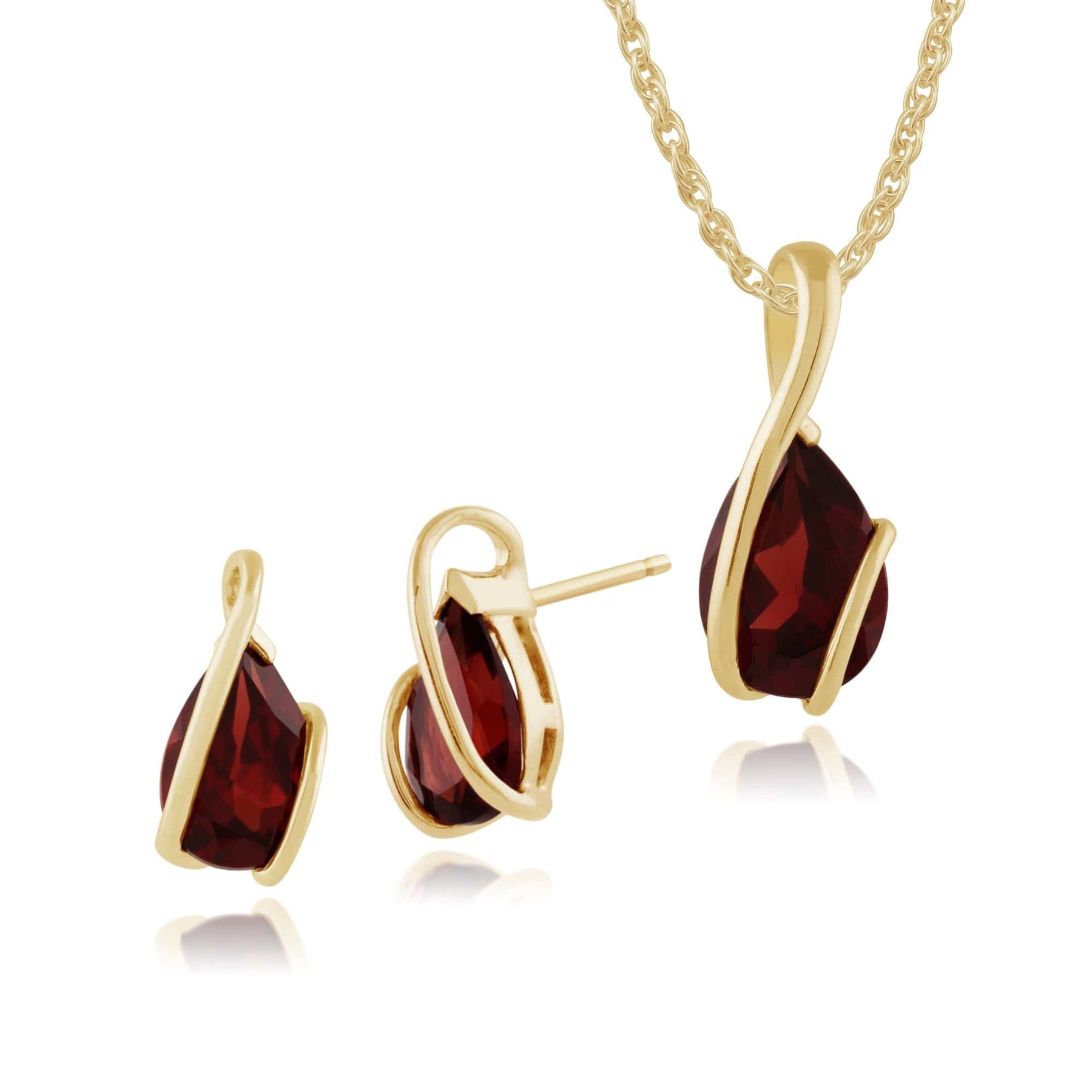 Classic Pear Garnet Wrap over Stud Earrings & Pendant Set in 9ct Yellow Gold