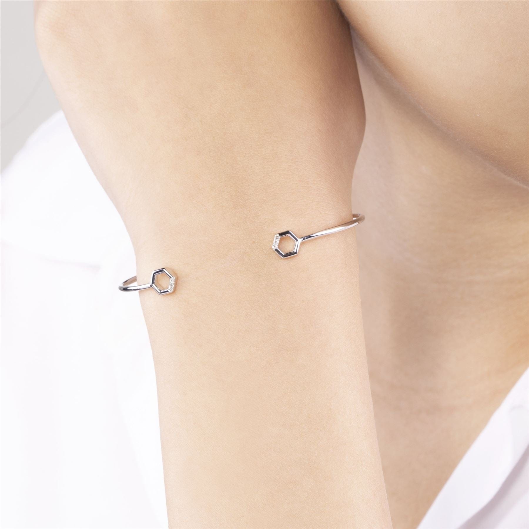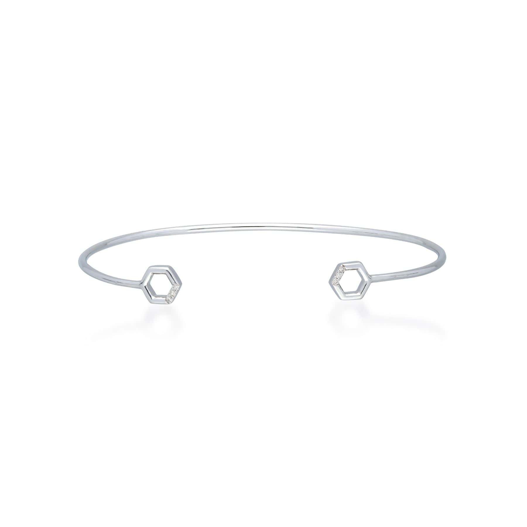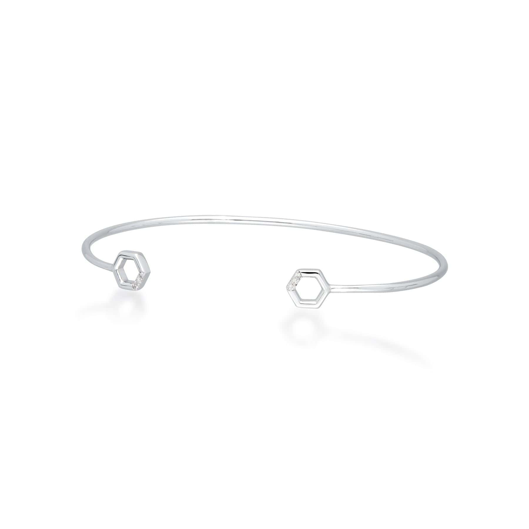 An elegant and delicate 9ct white gold bangle ended with diamond pavé open hexagons. Layer and stack with geometric jewellery pieces from Gemondo's Diamond Collection to complete the look.
