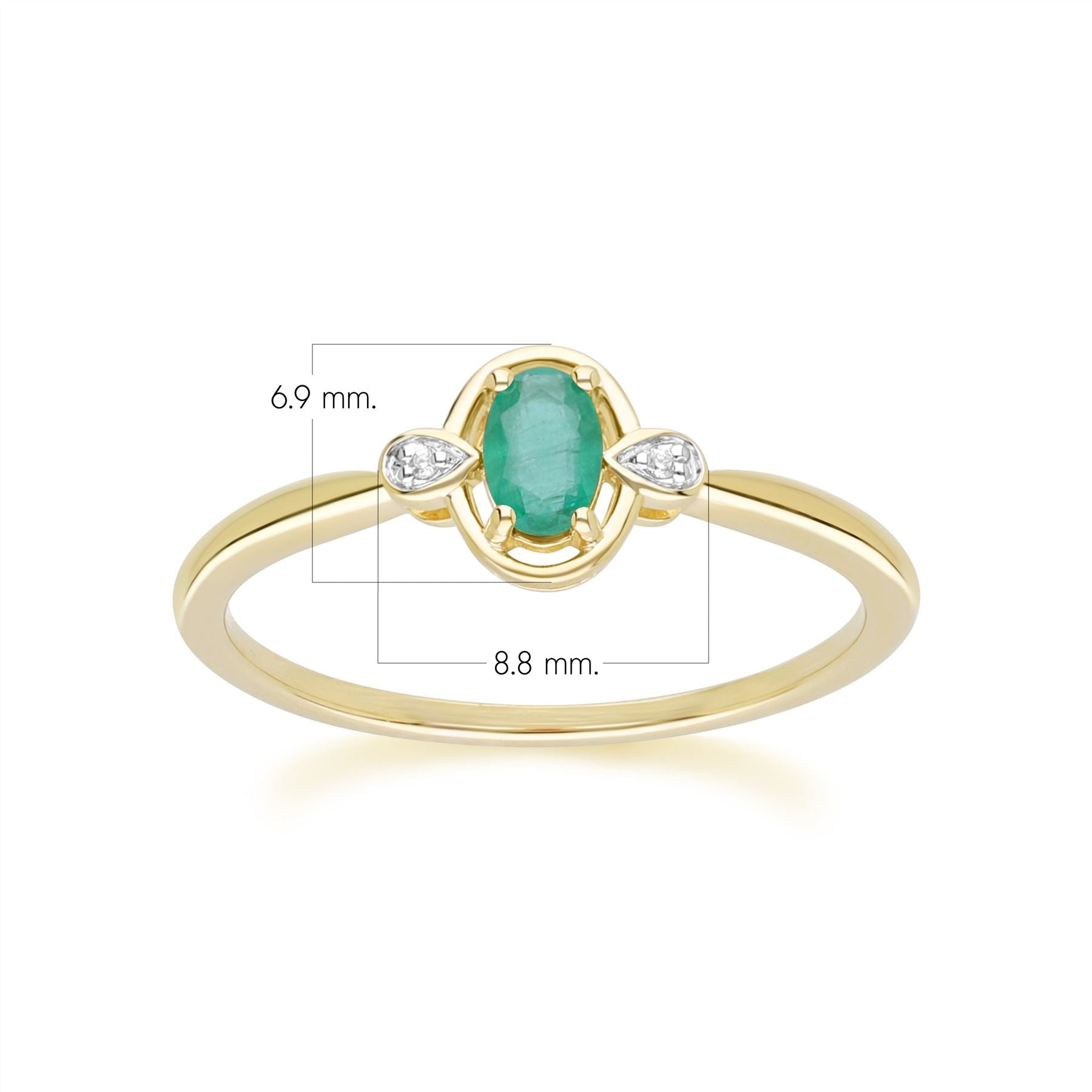 Classic Oval Emerald & Diamond Ring In 9ct Yellow Gold