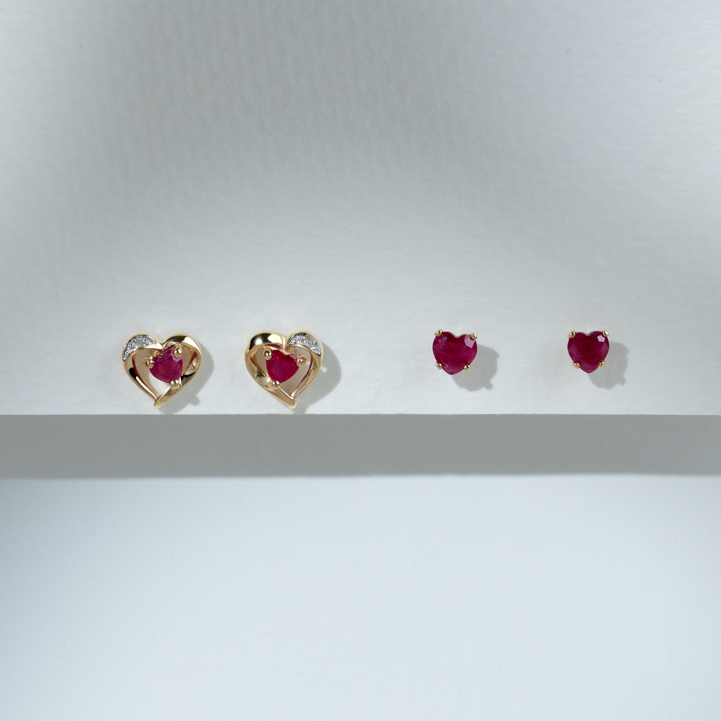 Classic Heart Ruby & Diamond Stud Earrings in 9ct Yellow Gold
