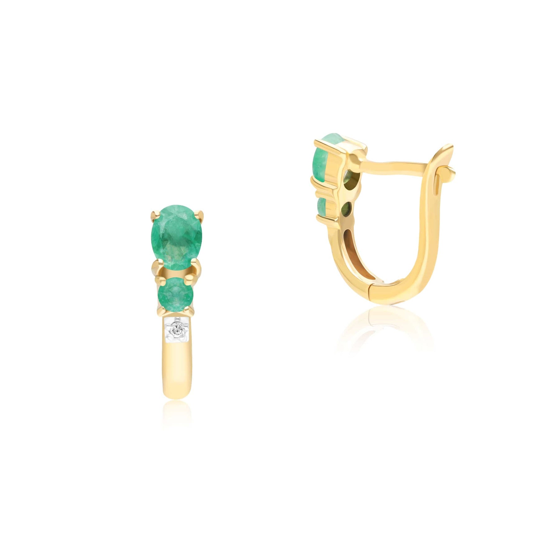 183E0407069 Classic Oval Emerald & Diamond Hoop Earrings in 9ct Yellow Gold 2