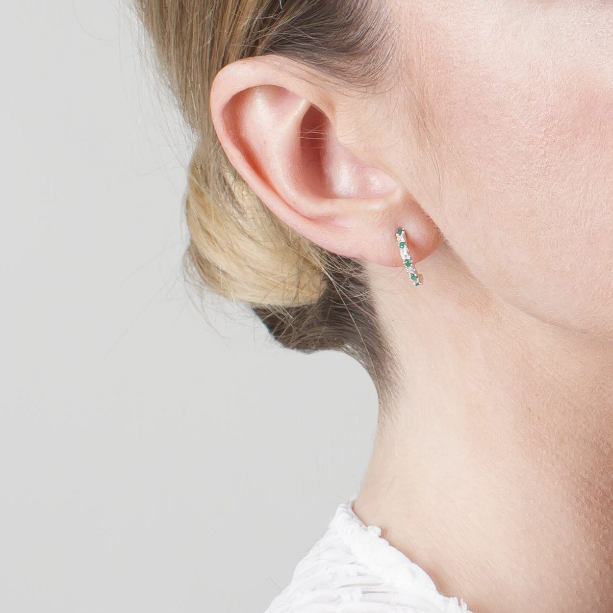 Classic Round Emerald & Diamond Half Hoop Style Earrings in 9ct White Gold - Gemondo