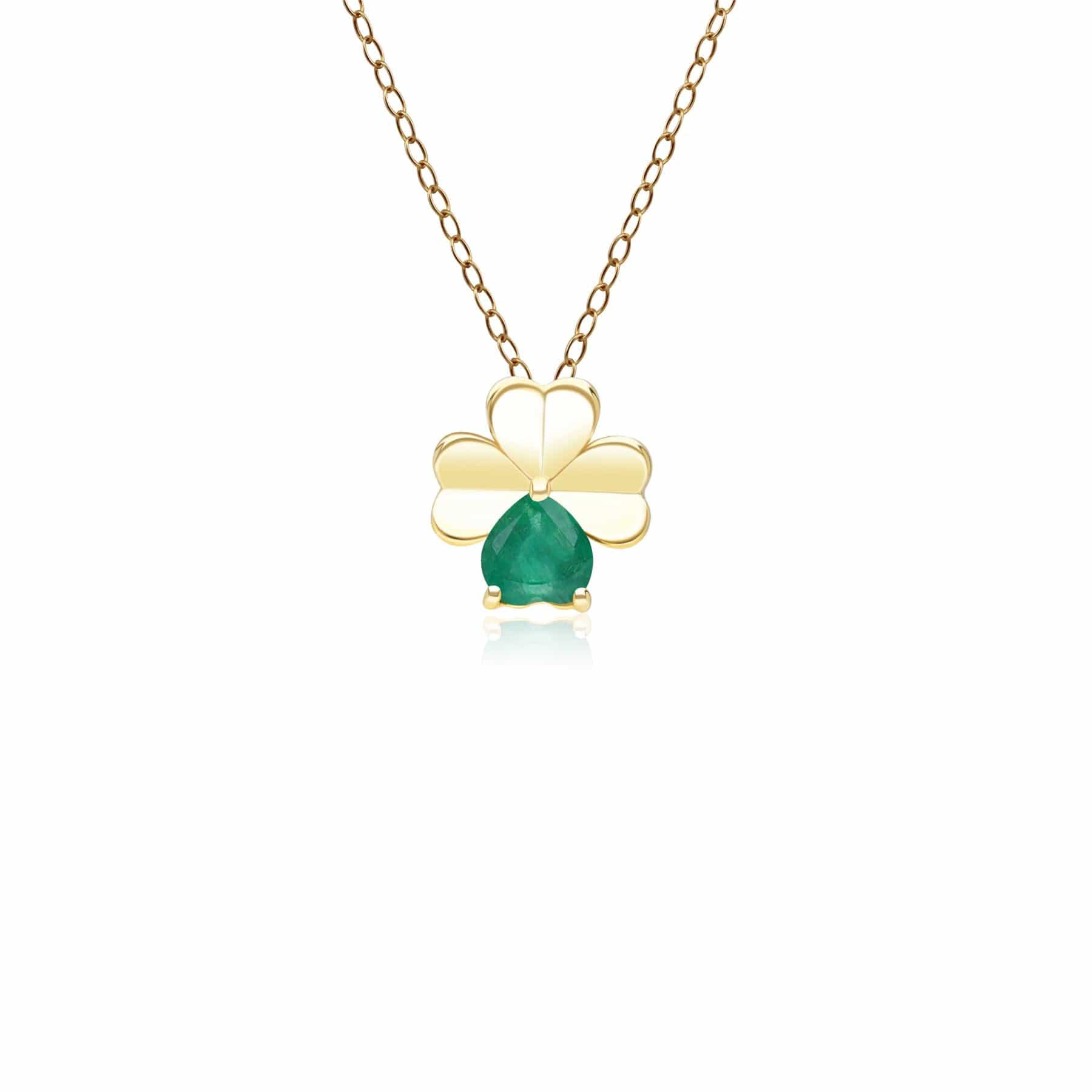 135P2126029 Gardenia Emerald Clover Pendant Necklace in 9ct Yellow Gold Front