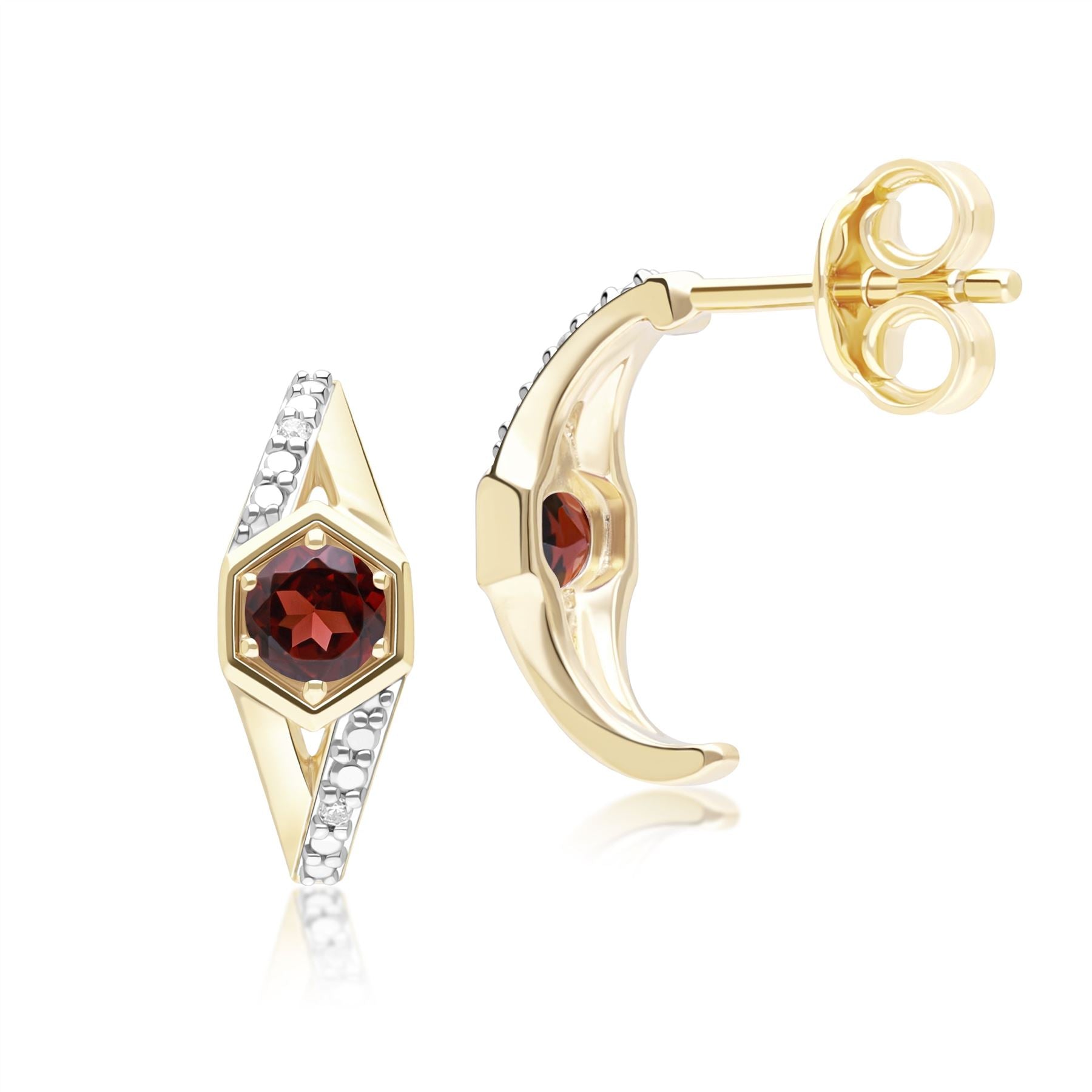 Geometric Hexagon with Prong set Round Garnet and Diamond Half Hoop Earrings in 9ct Yellow Gold