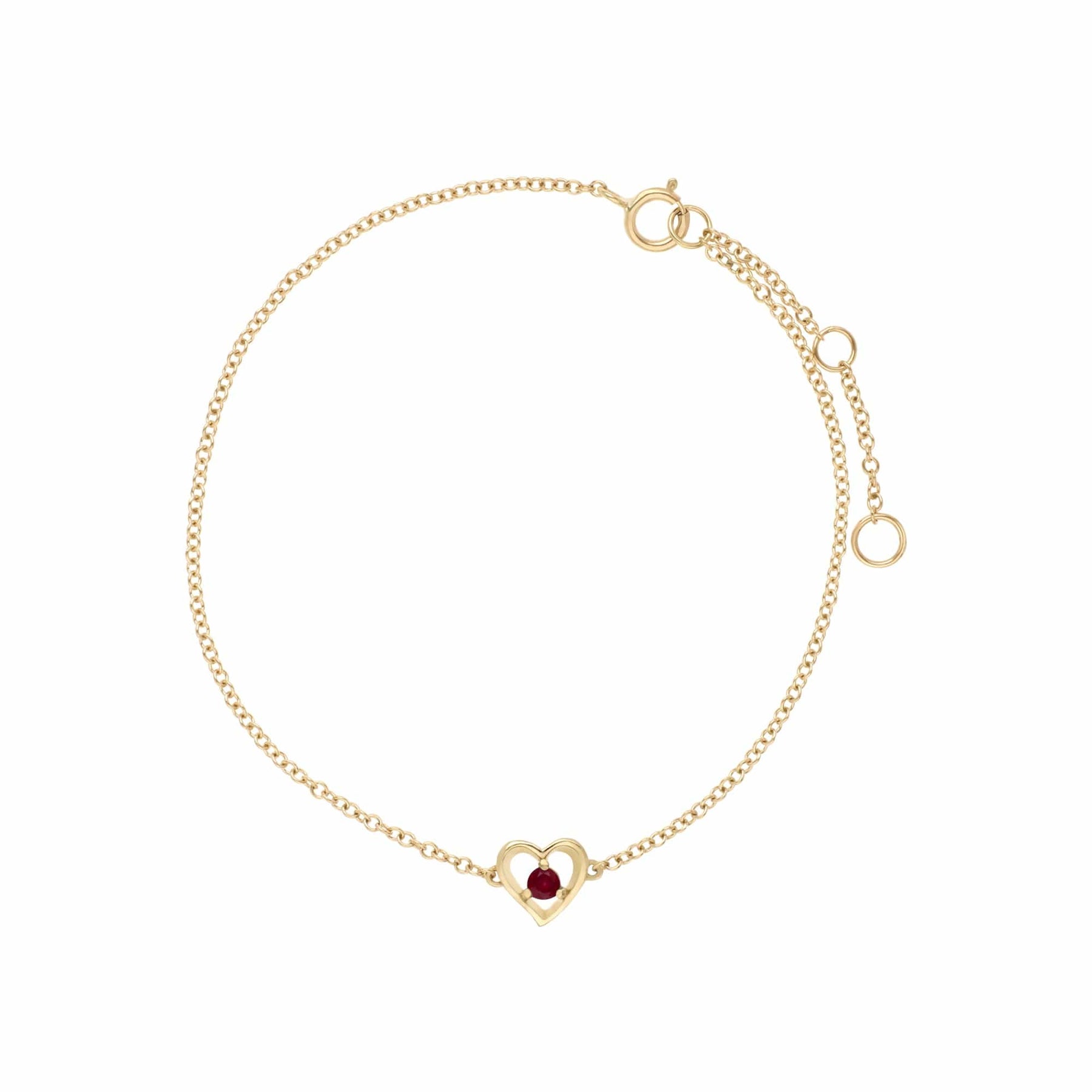 135L0290019 Classic Single Stone Round Ruby Love Heart Bracelet in 9ct Yellow Gold 2
