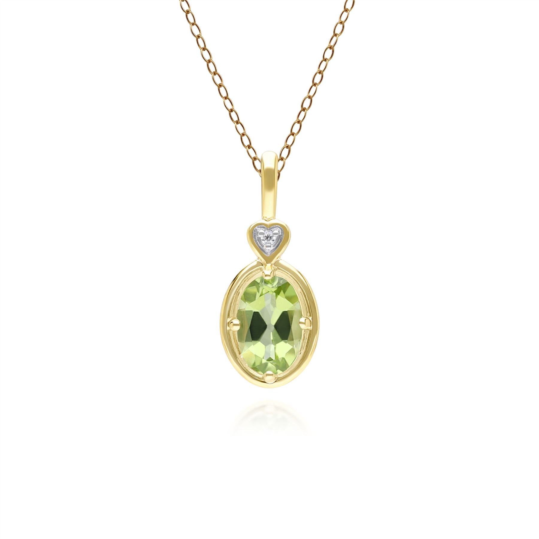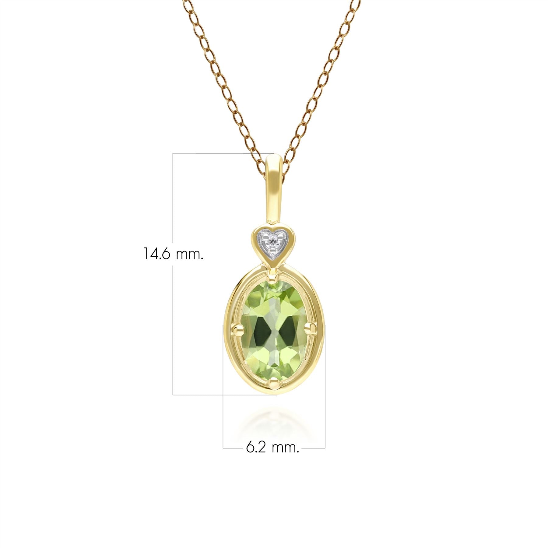Classic Oval Peridot & Diamond Heart Pendant Necklace In 9ct Yellow Gold
