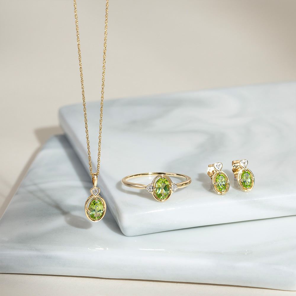 Peridot is a zesty gem with a vibrant green colour palette that can range from olive hues to darker bottle green shades. As a birthstone, peridot symbolism those born in August and is traditionally given as a 16th anniversary gift.
