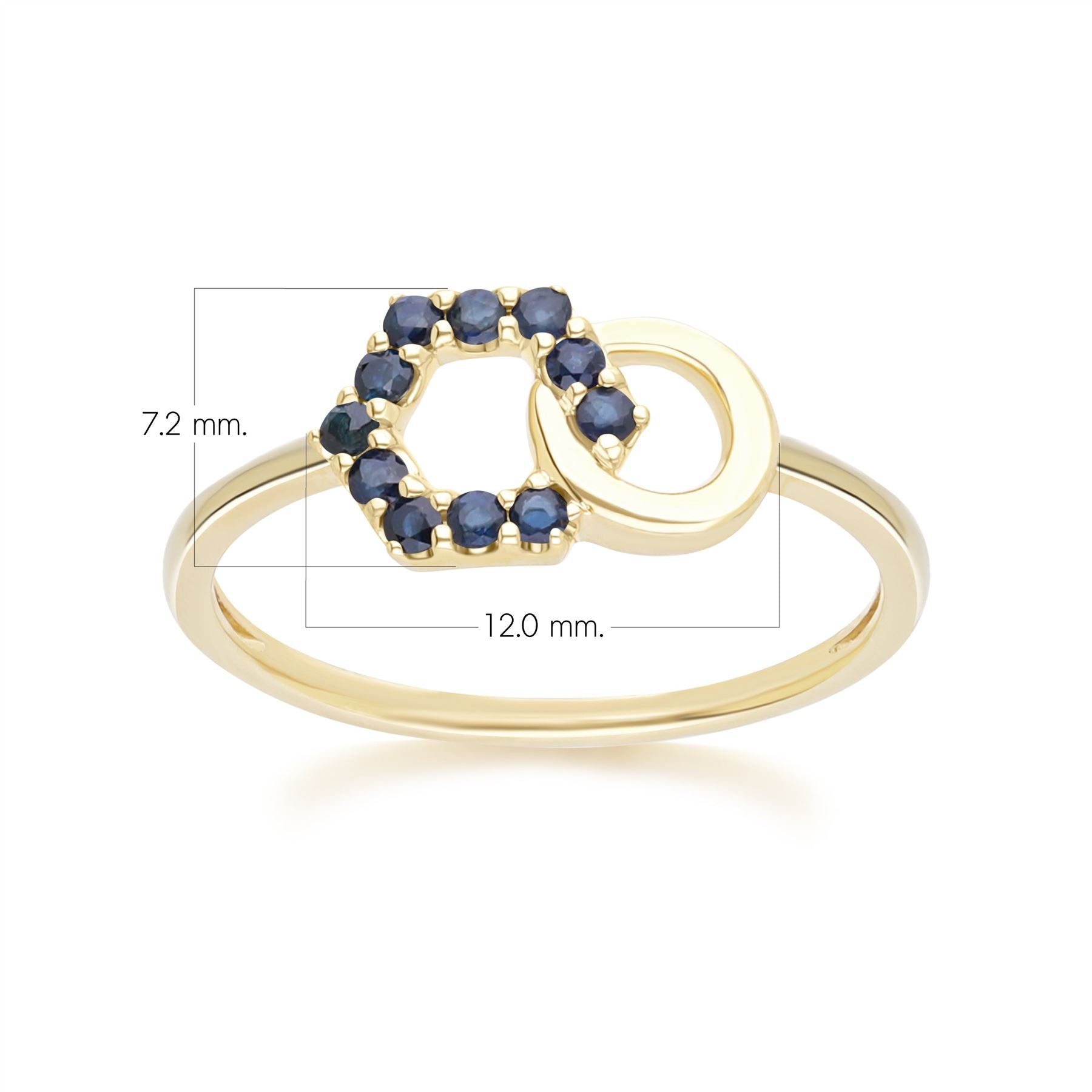 Geometric Hexagon and Round Linked with Prong Set Sapphire Ring in 9ct Yellow Gold