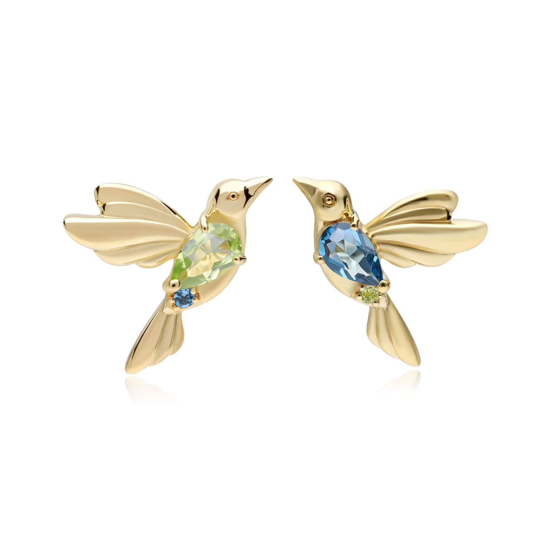 ECFEW™ Peridot and Blue Topaz Hummingbird Stud Earrings in 925 Sterling Silver