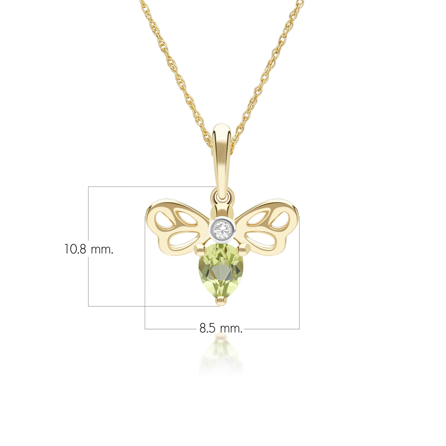 This honeycomb-inspired bee pendant necklace features peridot and diamond accents set in 9ct yellow gold to create a refined fine jewellery design. The bee motif highlights the colour and brilliance of the gemstones while maintaining an elegant, timeless aesthetic. Crafted in 9ct yellow gold.