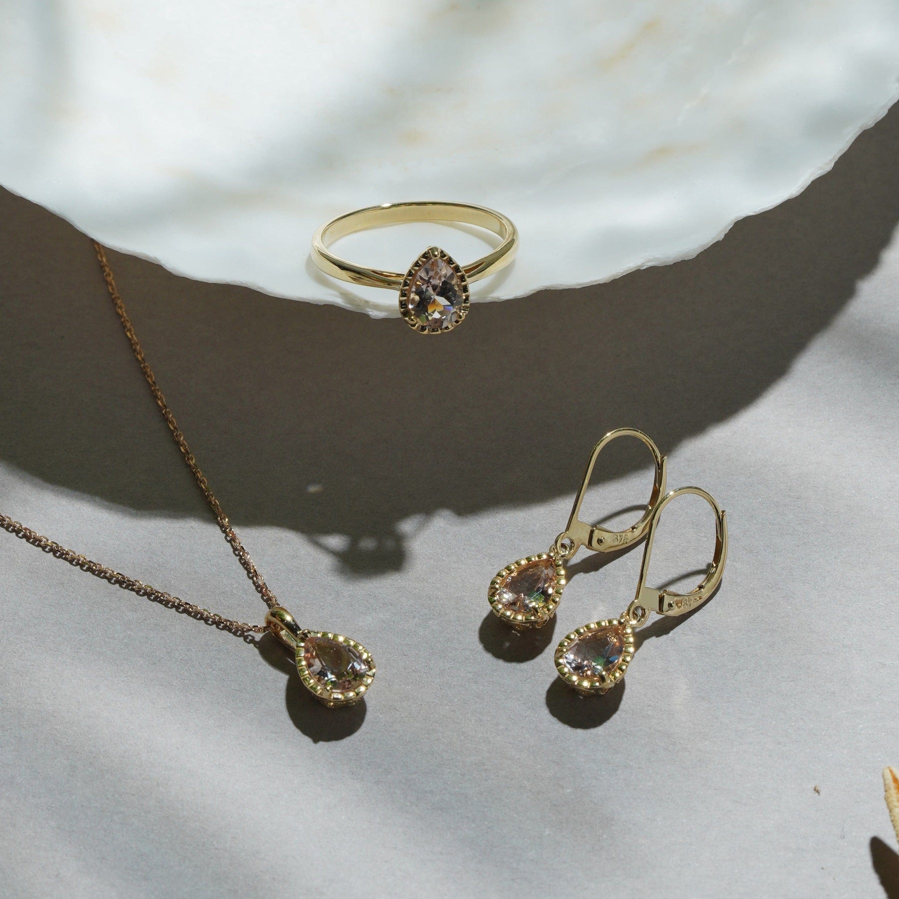 Classic Pear Morganite Ring in 9ct Yellow Gold
