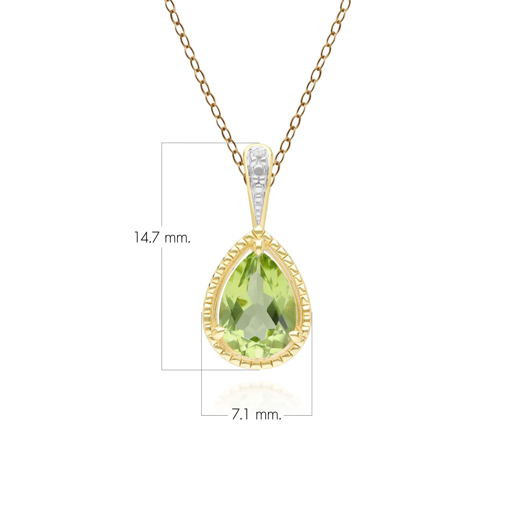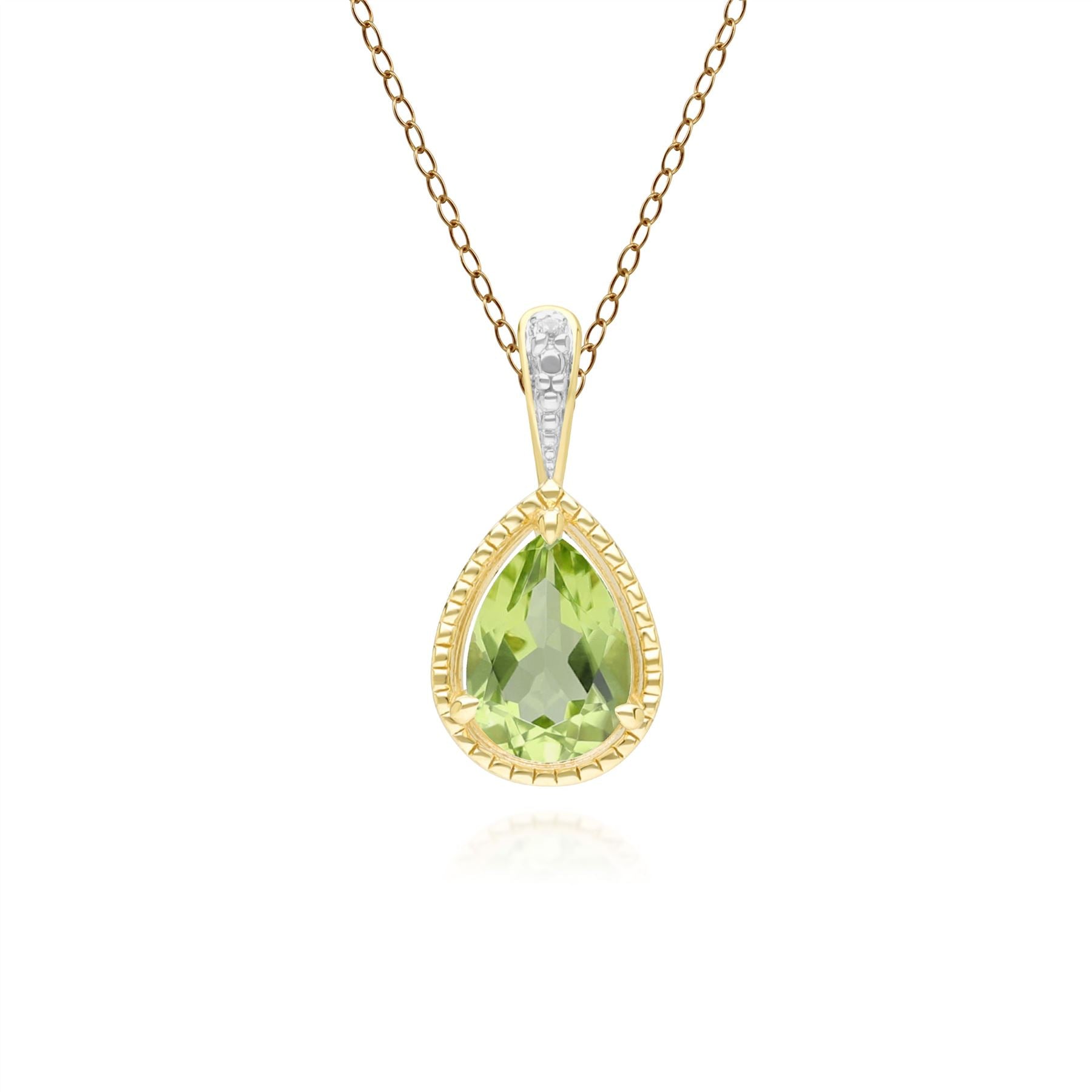 Classic Pear Peridot & Diamond Pendant Necklace In 9ct Yellow Gold
