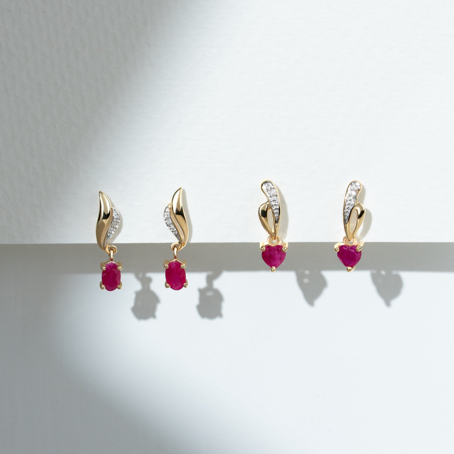 Gemstone Details | 2 x Ruby - 0.52ct - Heart Cut - 4mm 2 x Diamond - 0.008ct - Round Cut - 0.9mm |