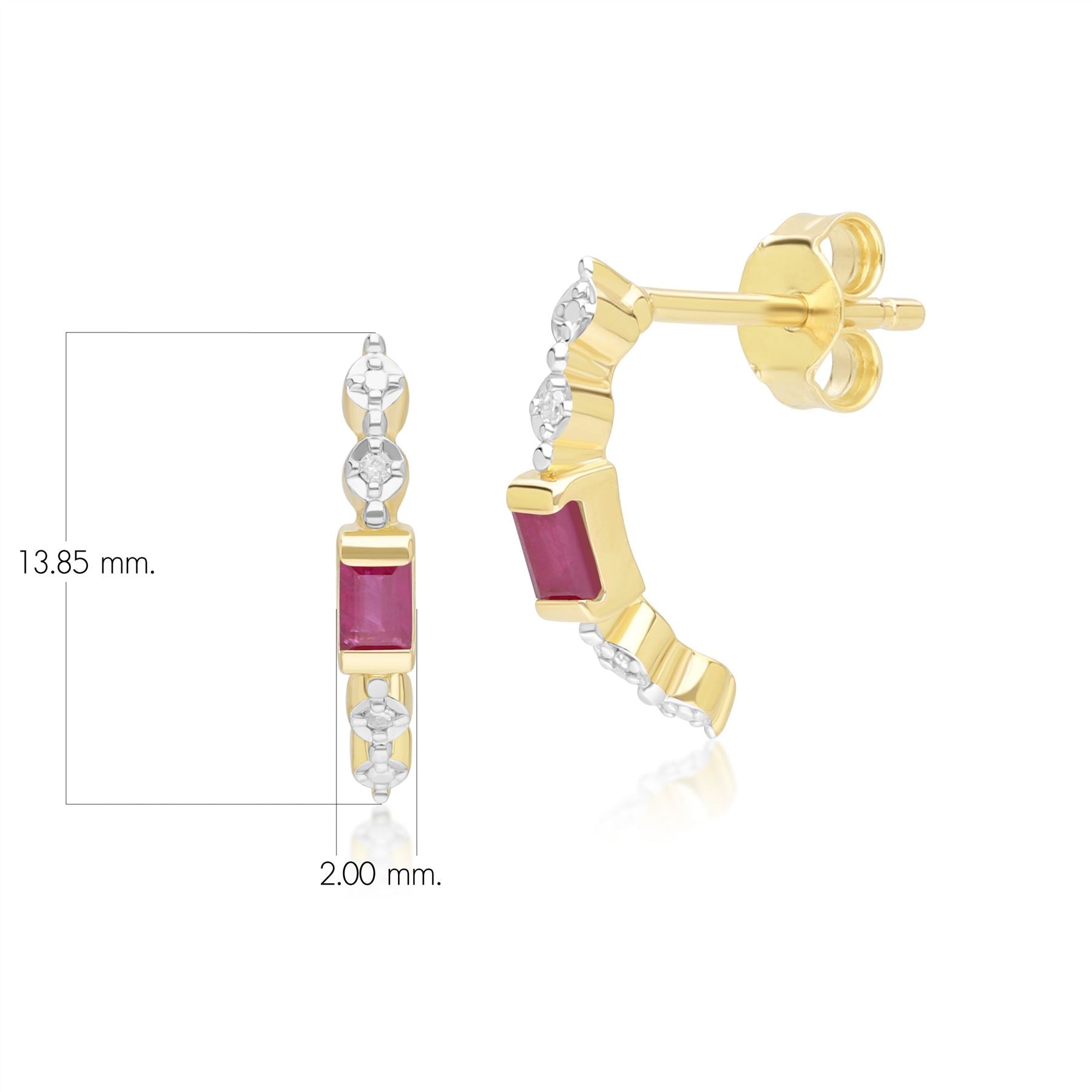 Classic Baguette Ruby & Diamond Half Eternity Hoop Earrings in 9ct Yellow Gold