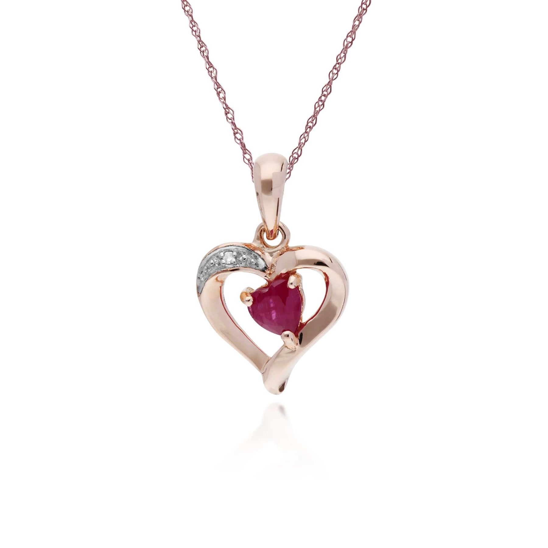 Classic Heart Ruby & Diamond Love Heart Pendant in 9ct Rose Gold