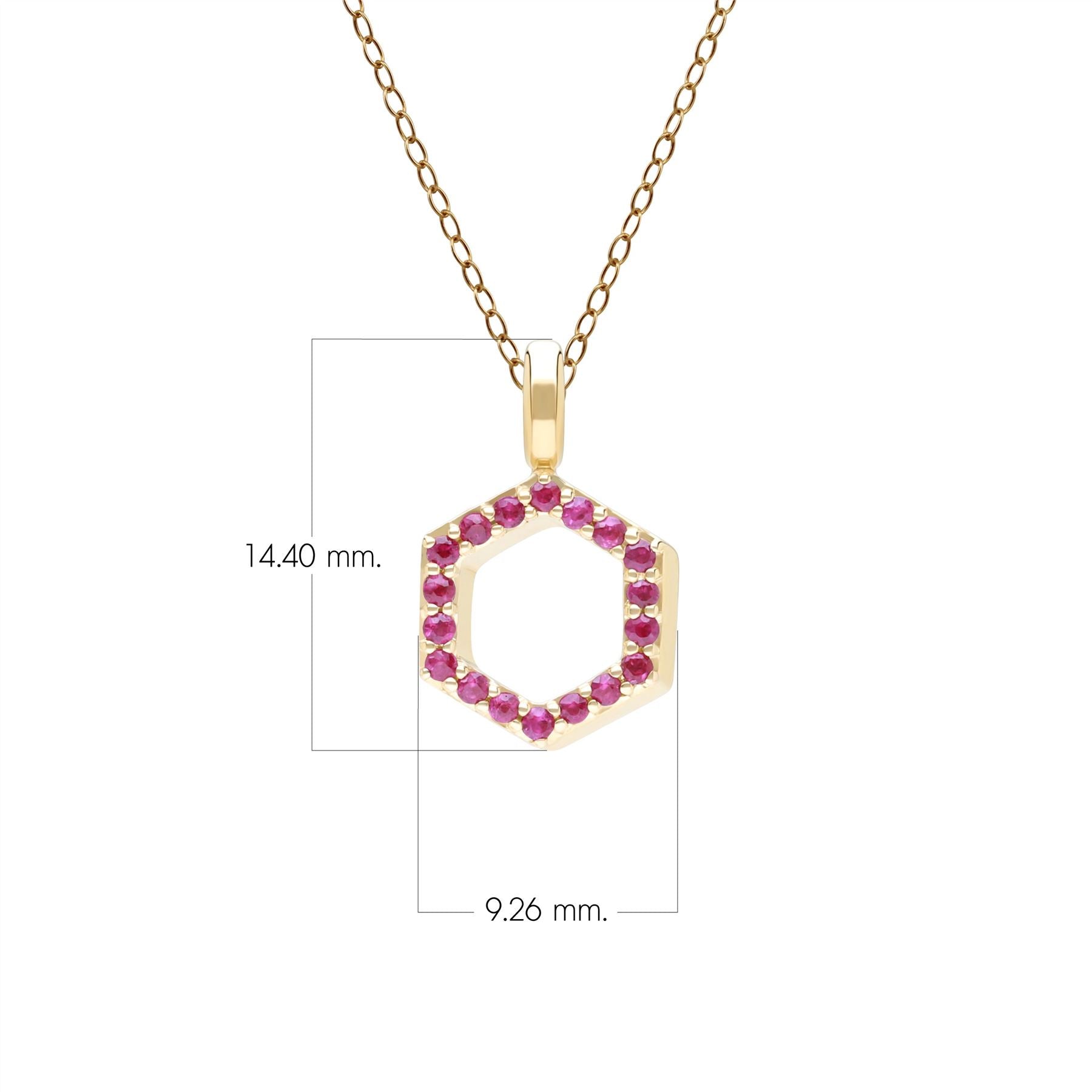 Geometric Hex ruby Pendant Necklace in 9ct Yellow Gold