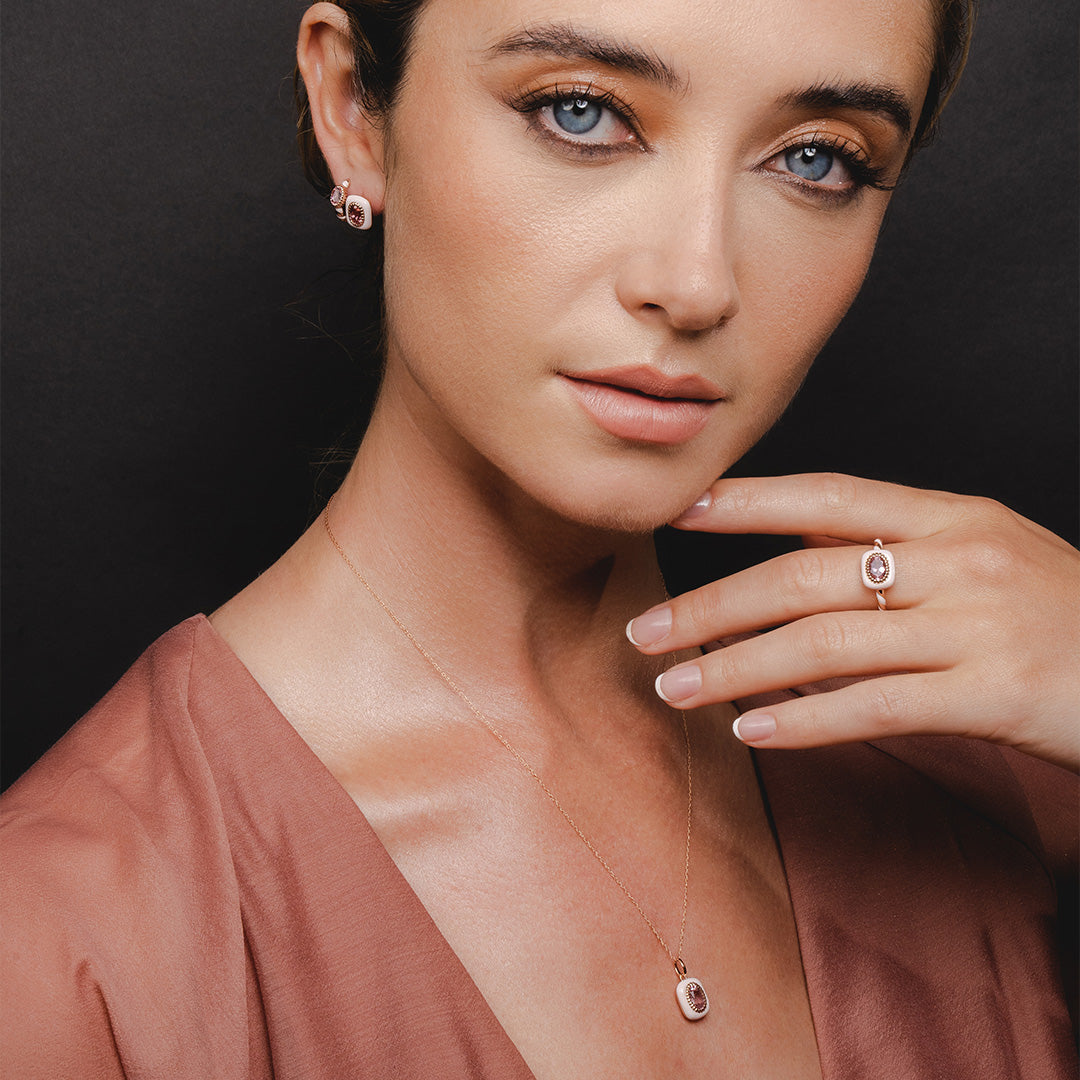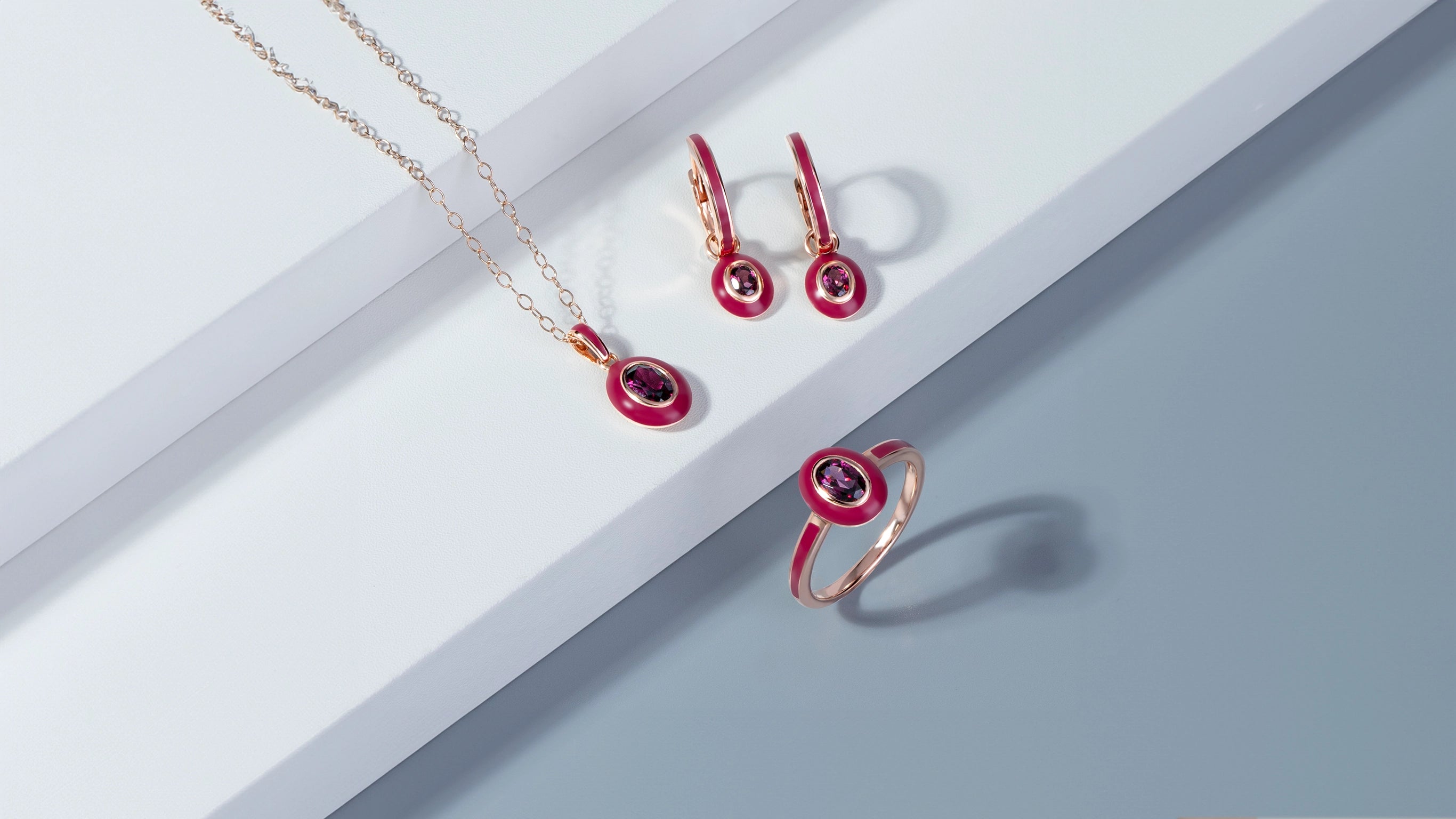 Immerse yourself in the kinetic colours of the Siberian Waltz collection. This is a place where the aesthetics of breath-taking Russian architecture and the opulence of tsarist jewels are honoured in the intricate twists and turns of a jewellery dance. With colourful enamel details and vibrant gemstones, this jewellery collection of square hoops, stacking rings and layering pendants is inviting you to the ball.