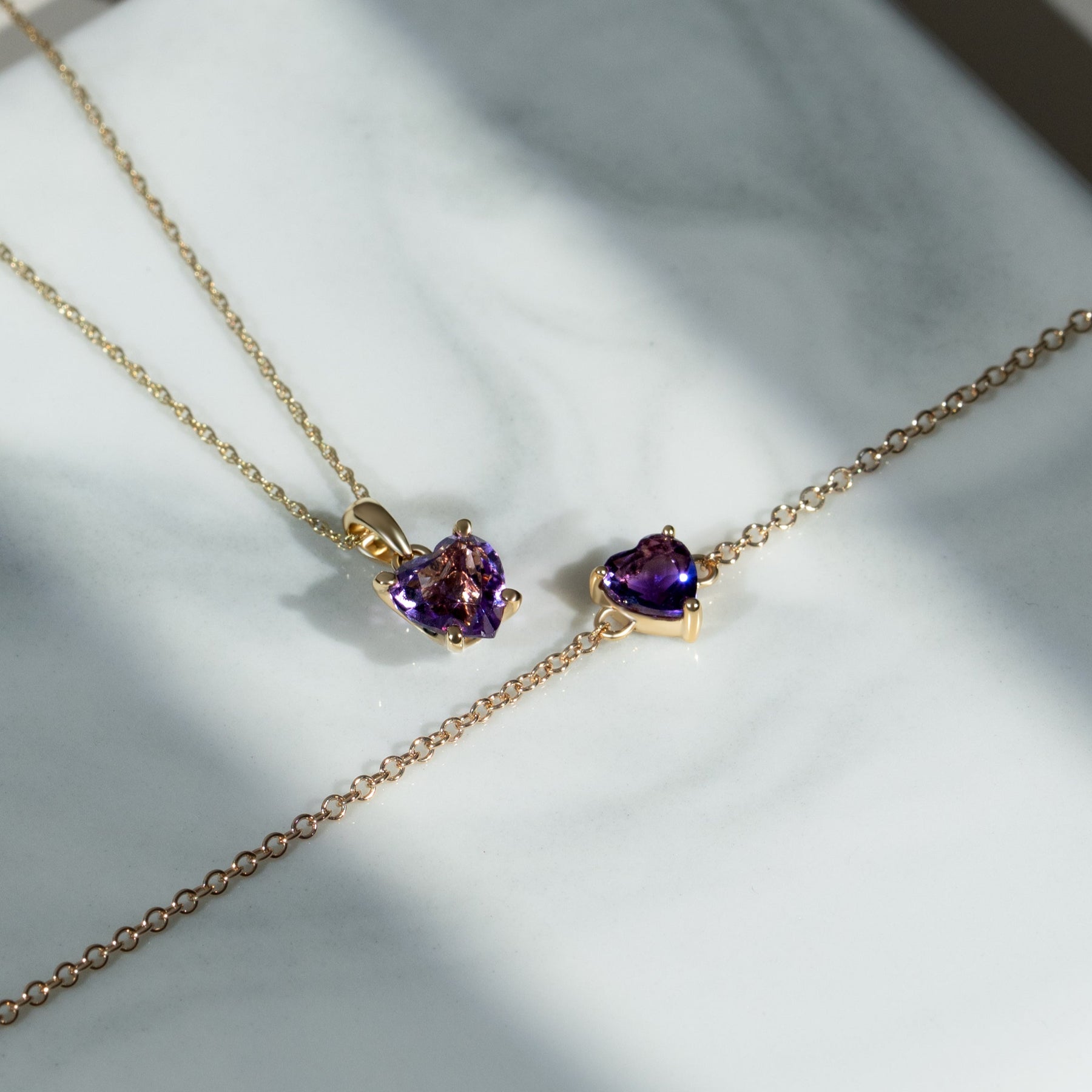 Petite Heart Amethyst Bracelet in 9ct Yellow Gold