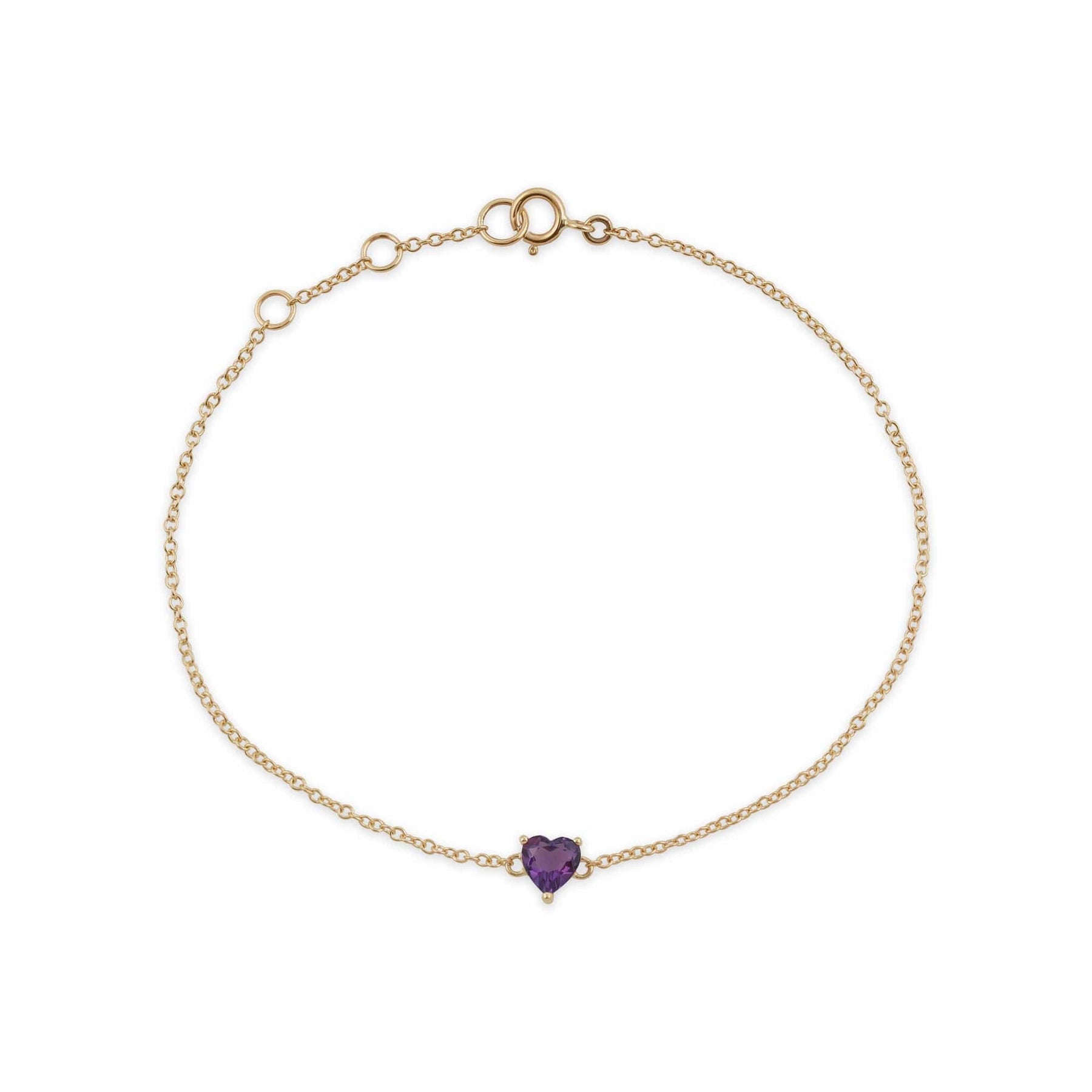 Petite Heart Amethyst  Bracelet in 9ct Yellow Gold - Gemondo