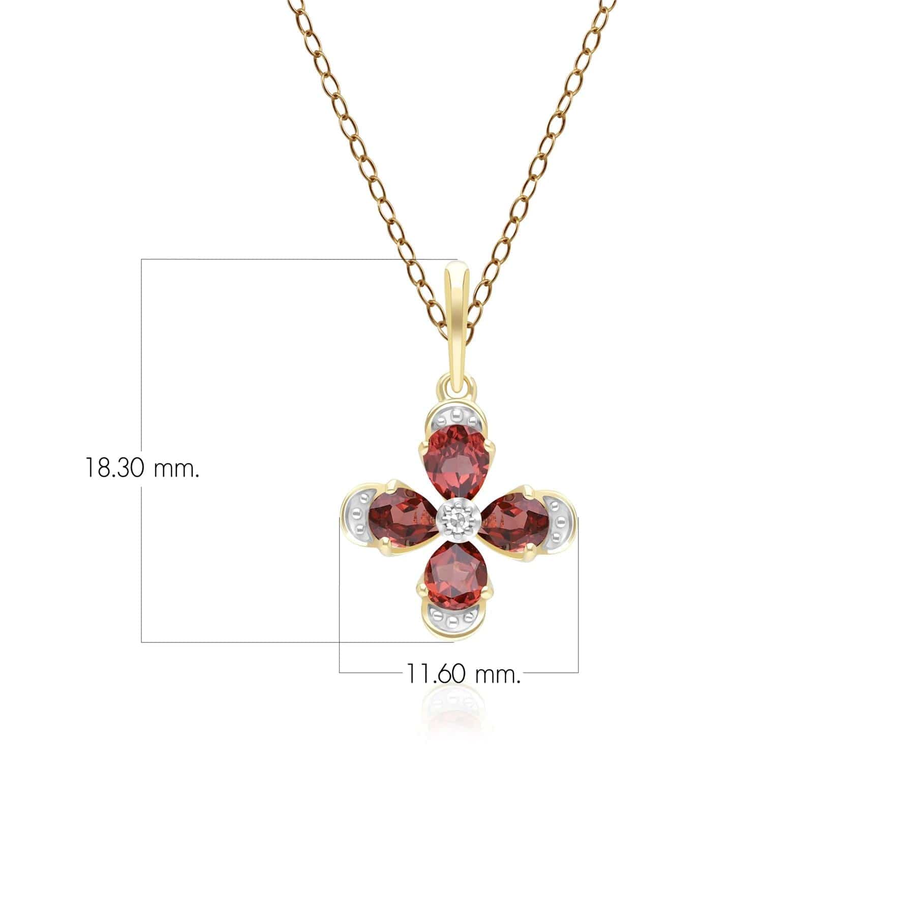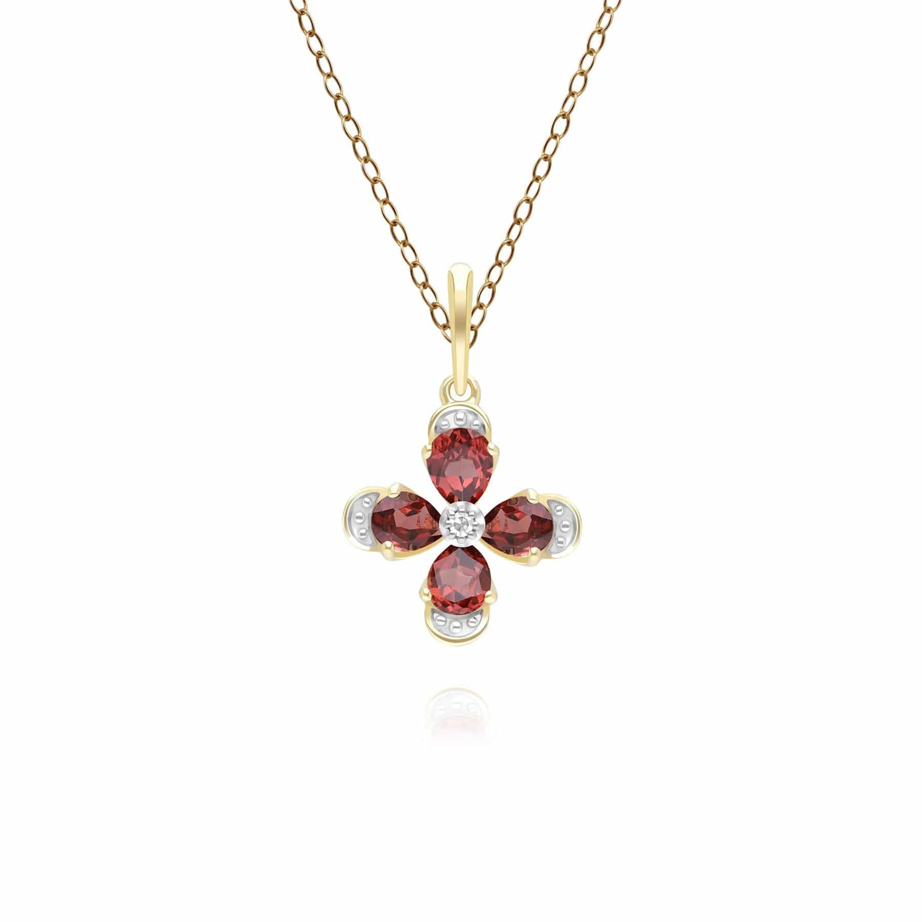 Floral Garnet & Diamond Pendant Necklace in 9ct Yellow Gold