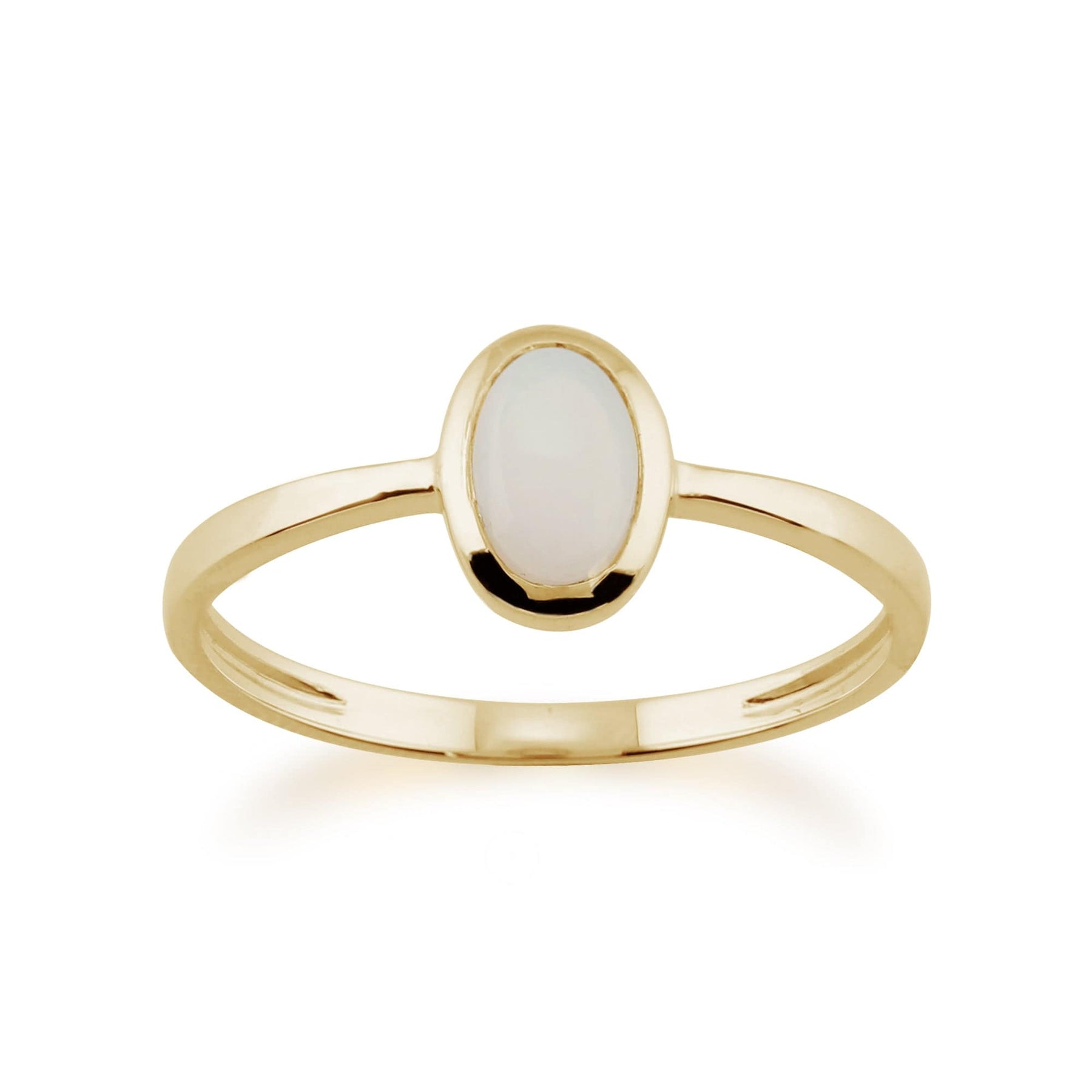 An elegant yet simple opal ring framed in an oval bezel setting on a classic 9ct yellow gold band.