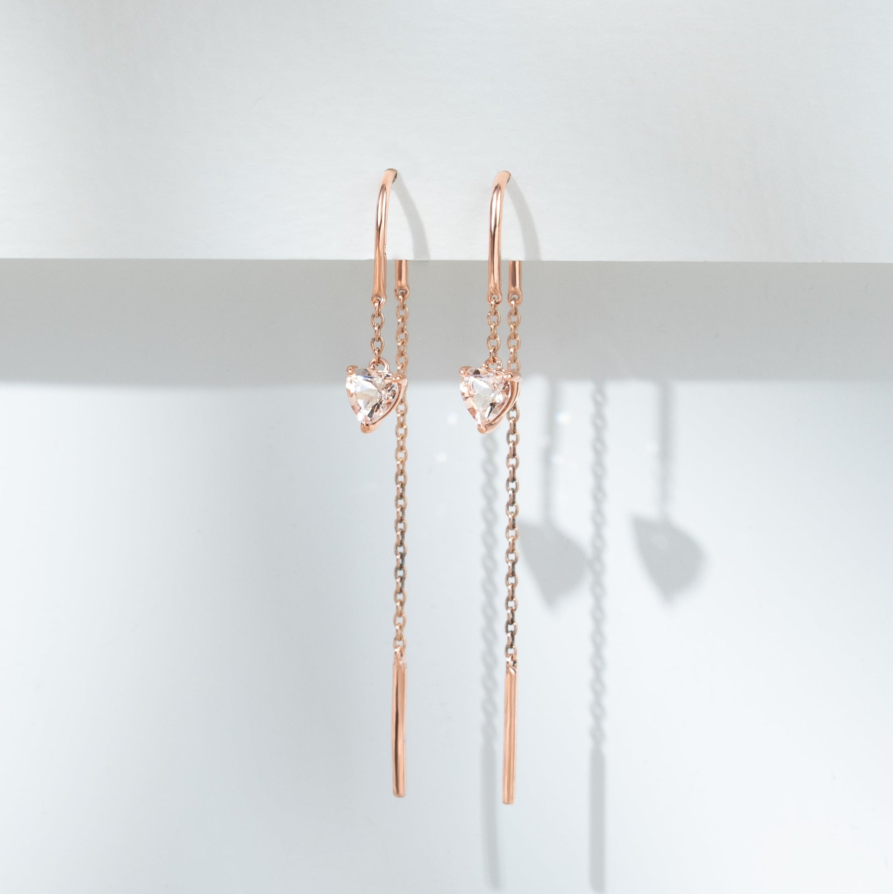 Morganite Heart Threader Earrings in 9ct Rose Gold