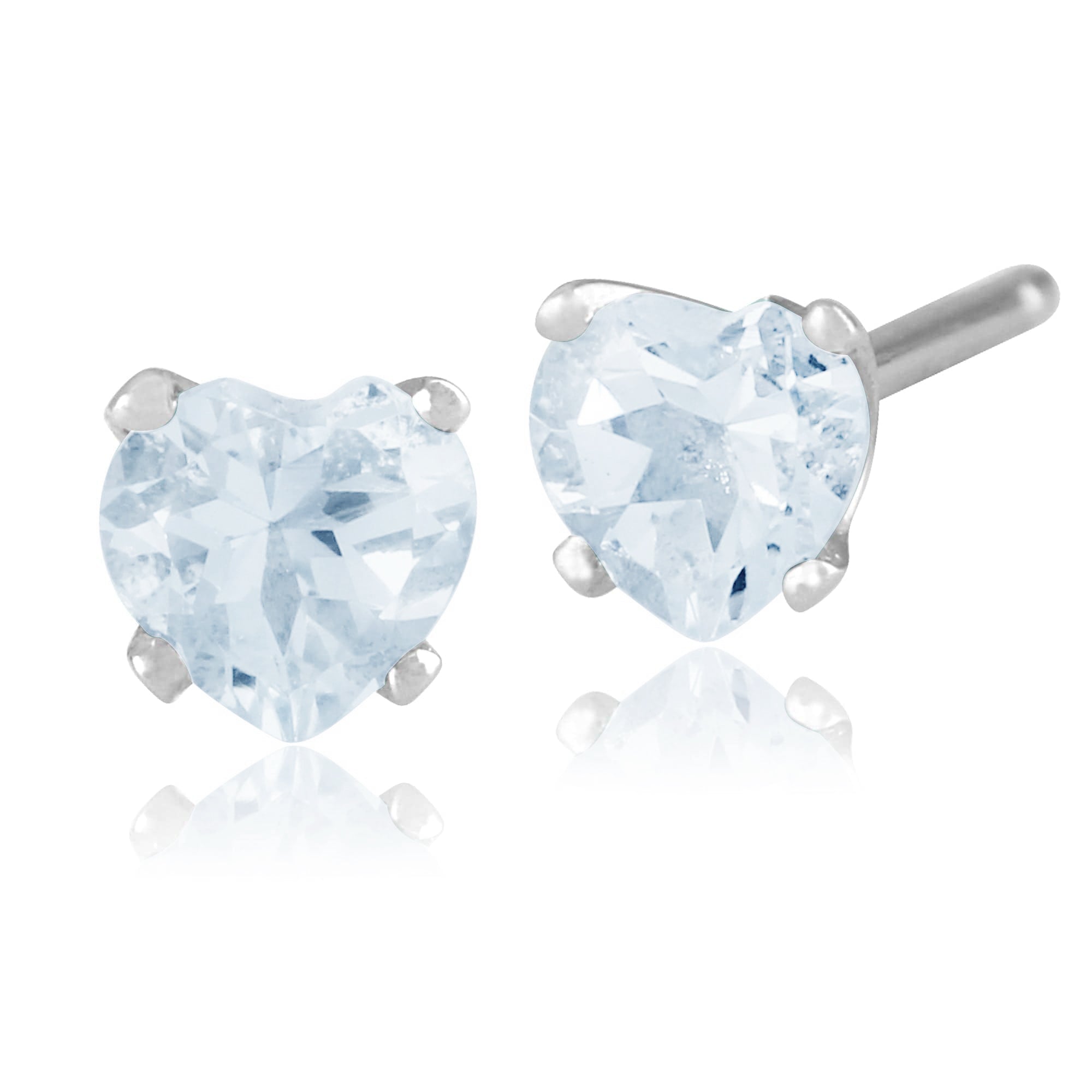 Classic Heart Aquamarine Stud Earrings in 9ct White Gold