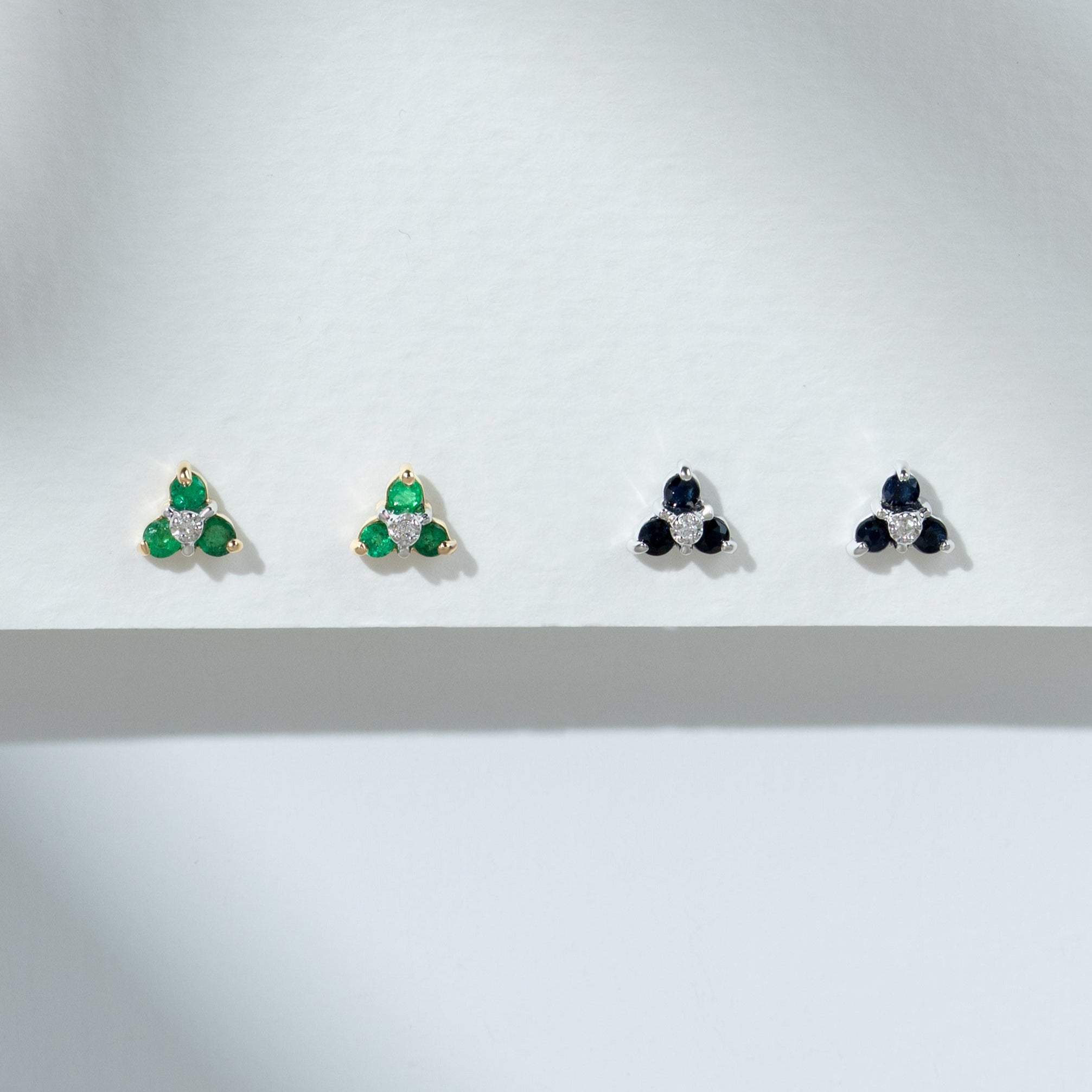 Classic Emerald & Diamond Floral Stud Earrings in 9ct White Gold