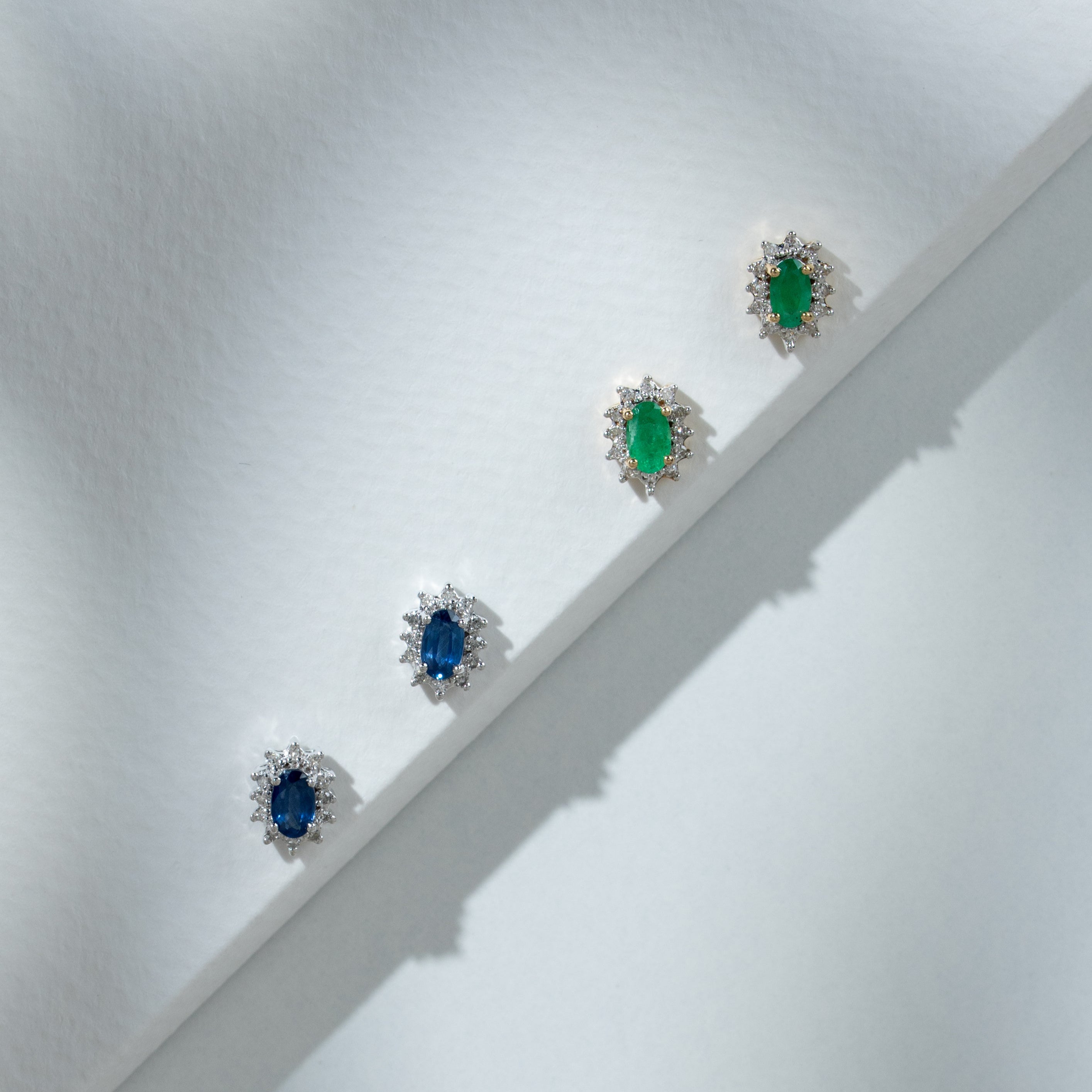 Classic Oval Light Blue Sapphire & Diamond Cluster Stud Earrings in 9ct White Gold