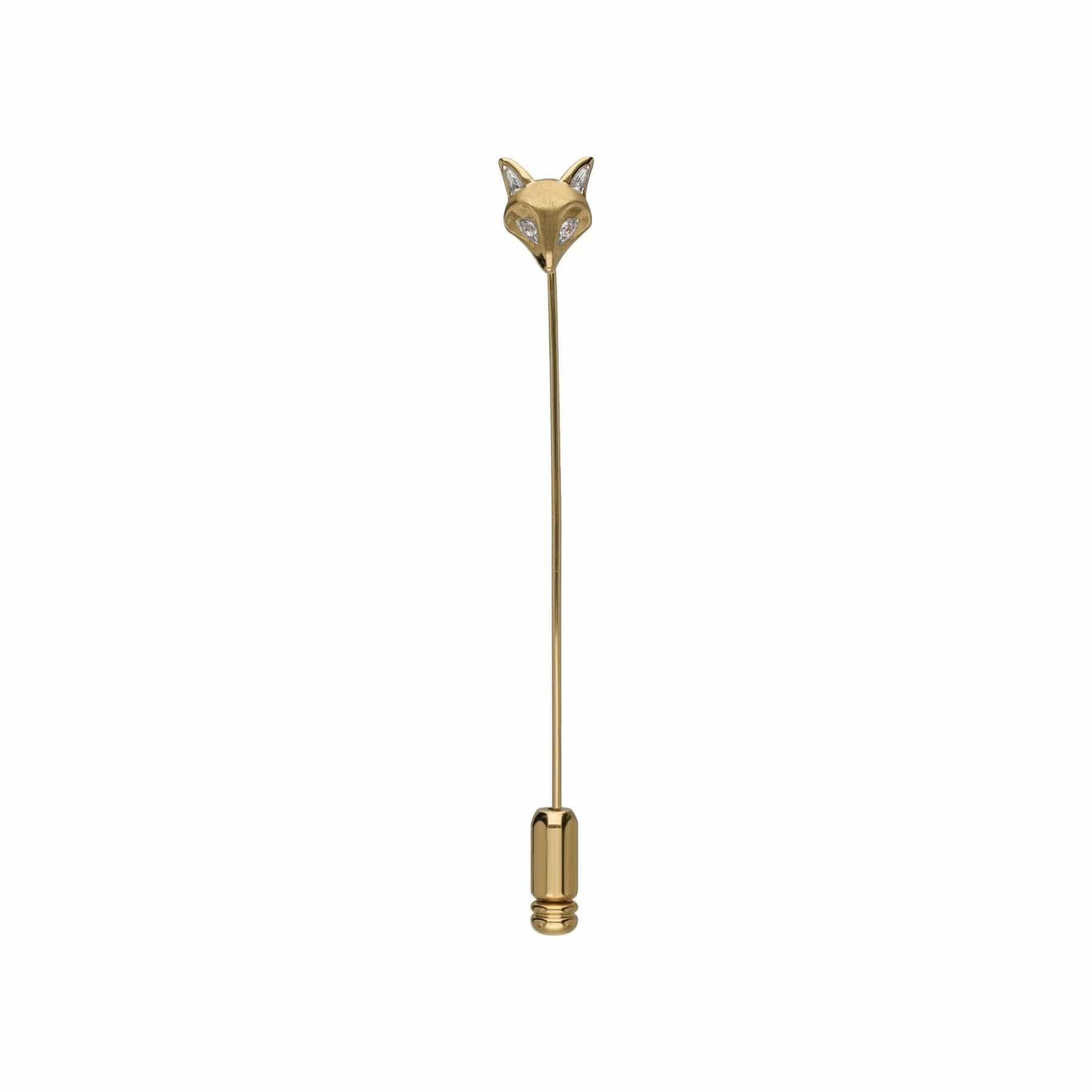 Gardenia White Sapphire Fox Lapel Pin In 9ct Yellow Gold